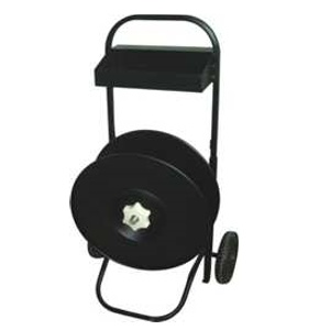Carro dispensador porta zuncho de polipropileno de 12 -16 -19 mm de ancho, confeccionado en acero tubular de alta resistencia, con ruedas y caja para accesorios, con freno y porta rollo de Ø 200mm.